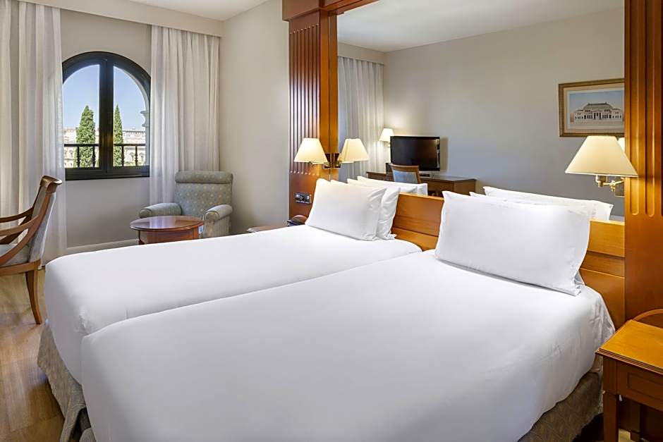 Offering views of the Andalusia Parliament building, the Macarena Basilica and Seville's old walls, this bright, air-conditioned room has flat-screen satellite TV, mini-bar and laptop safe. The private bathroom comes with a hairdryer and toiletries.